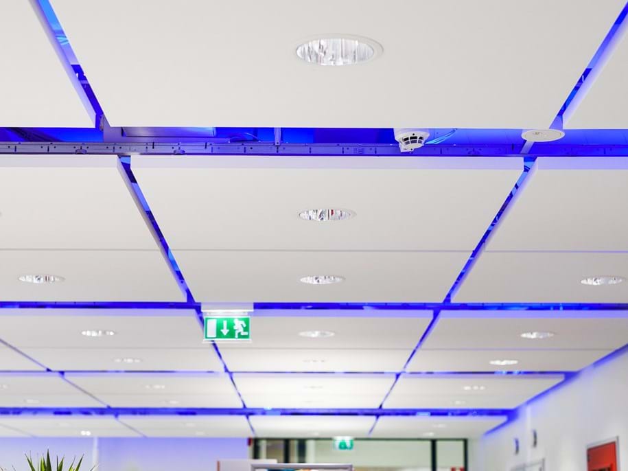 The desicion was then to cover the whole space with a class A acoustic ceiling and to install fitted carpets on the floor. The acoustic ceiling should also create a light, floating look in the office spaces, and be easy to demount for cleaning purposes. Master Matrix fulfilled these demands and was selected as the acoustic solution. The choice of indirect lighting further enhanced the floating effect of the ceiling.