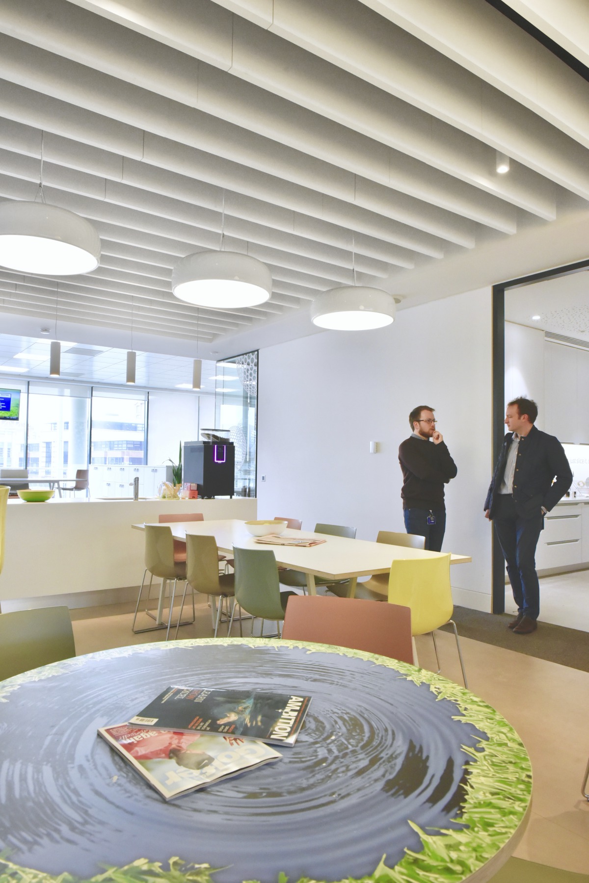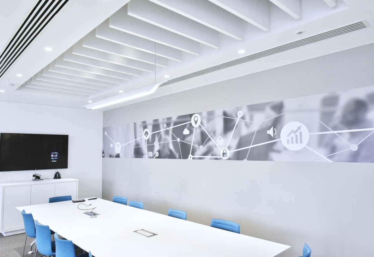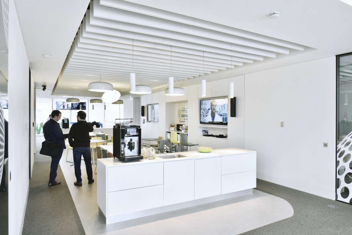 Ecophon’s Andrew Acheson said, “I think they’ve achieved a very interesting look with the baffles and plasterboard edging.” Mark also added, “We had good local support from the Ecophon team and the client is very happy with their new workspace.”