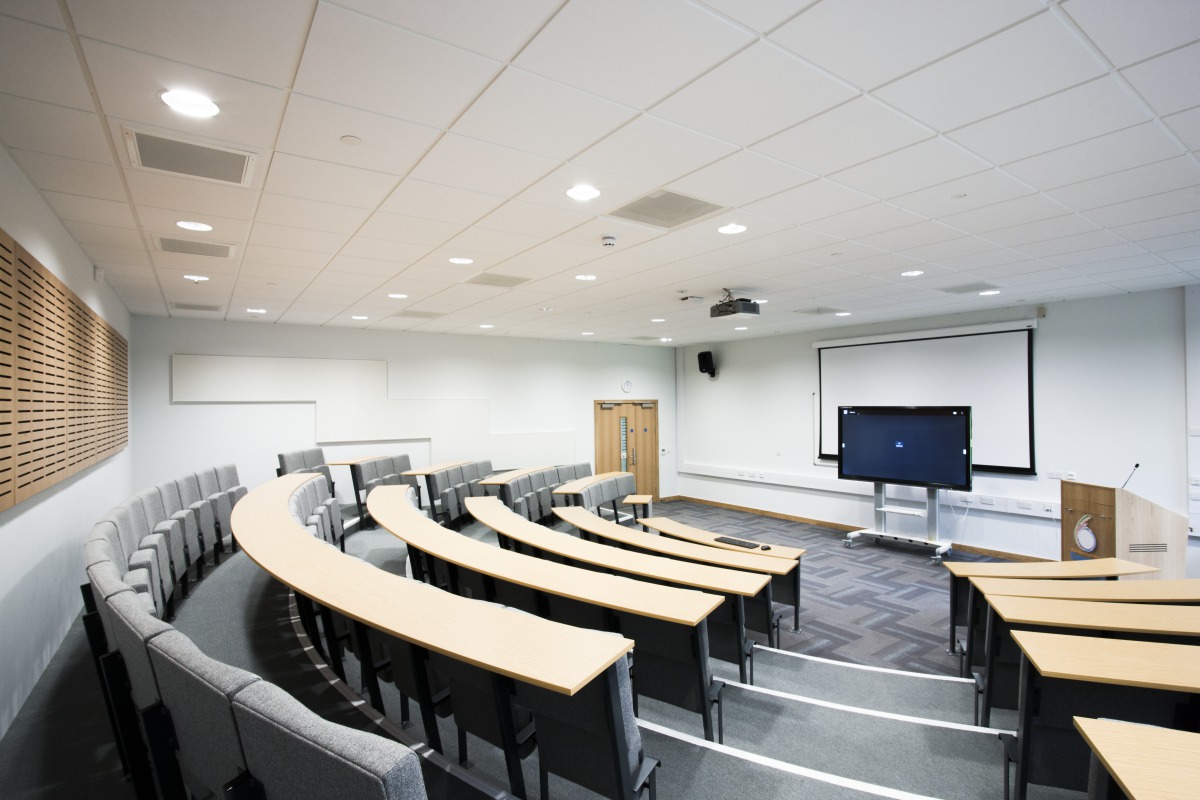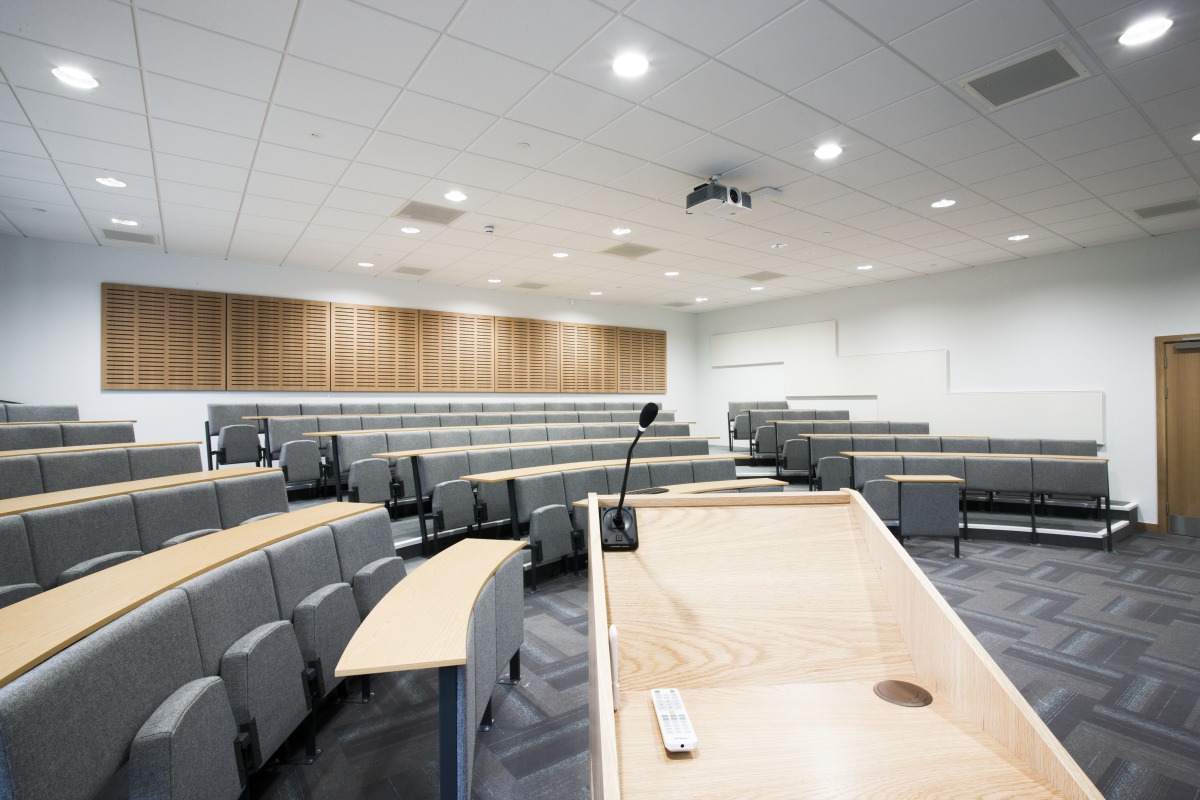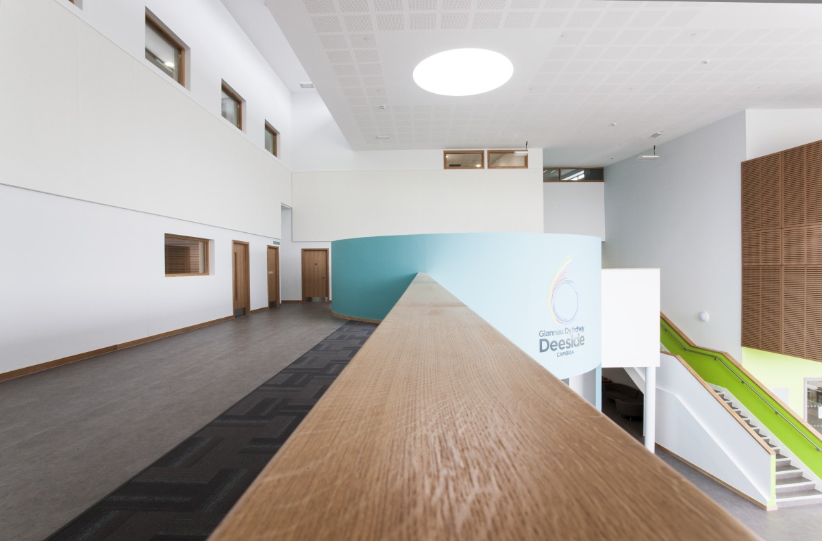 Coleg Cambria is a brand new state-of-the-art sixth form hub on Deeside and opened its doors to over 700 students in September 2016. It has an airy reception area, vast lecture hall and performance space and music terrace. Other facilities include a learning resource centre, informal study areas, classrooms, gallery exhibition space, mac suite, and art and science departments.There was a strong aesthetic design from the outset. As the £14.6m college is primarily a teaching and learning environment, the quality of acoustics was a major priority when it was being designed and built.