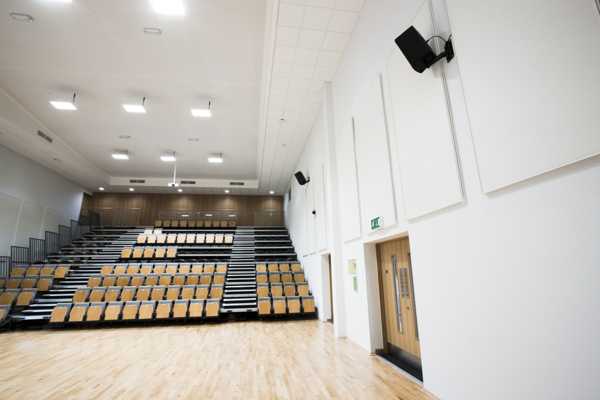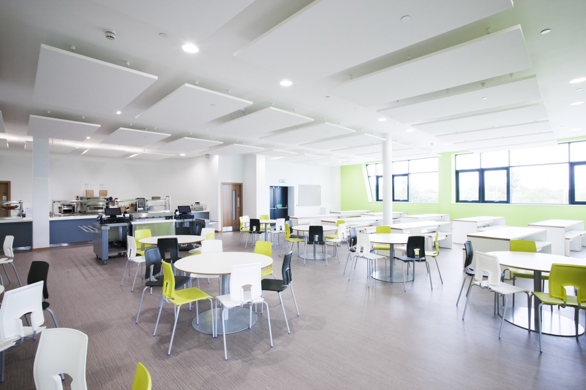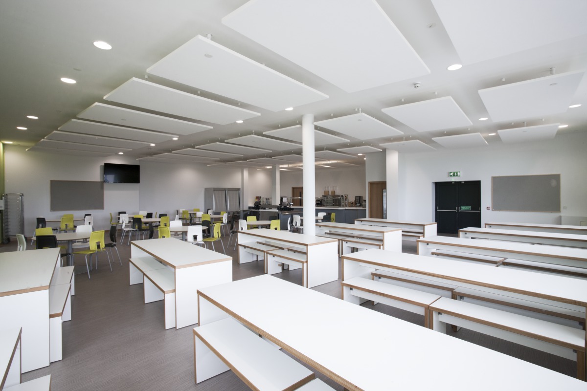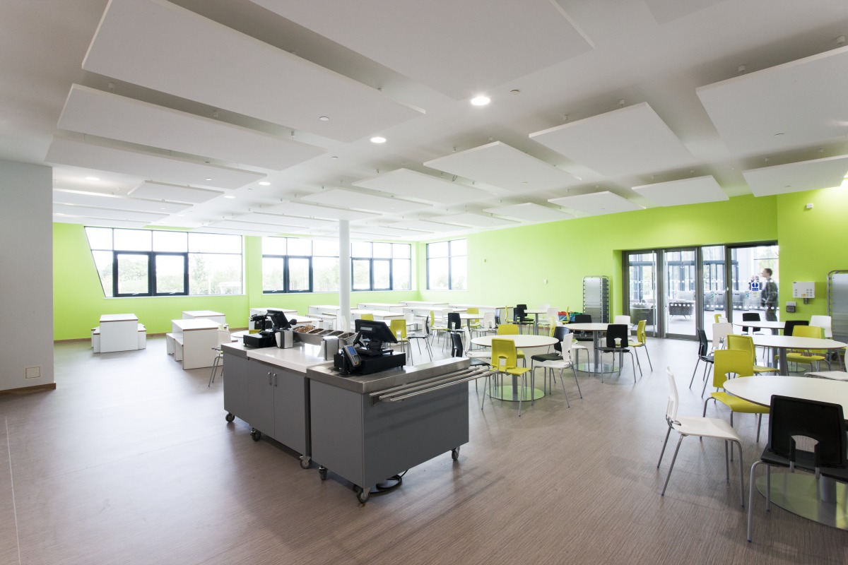 As well as the open-plan areas, there are a number of other acoustically challenging rooms within the building. The main hall is used for both speech and music performances and Akusto wall panels were specified here to successfully help control the noise levels within the room, allowing speech intelligibility with or without amplification. Other key noise generating rooms such as the Dining Room and Learning Resource Centre used Solo Rectangle hanging acoustic panels to help absorb the generated noise. Within the standard classrooms Gedina E ceiling tiles were used to control reverberation to ensure speech legibility."