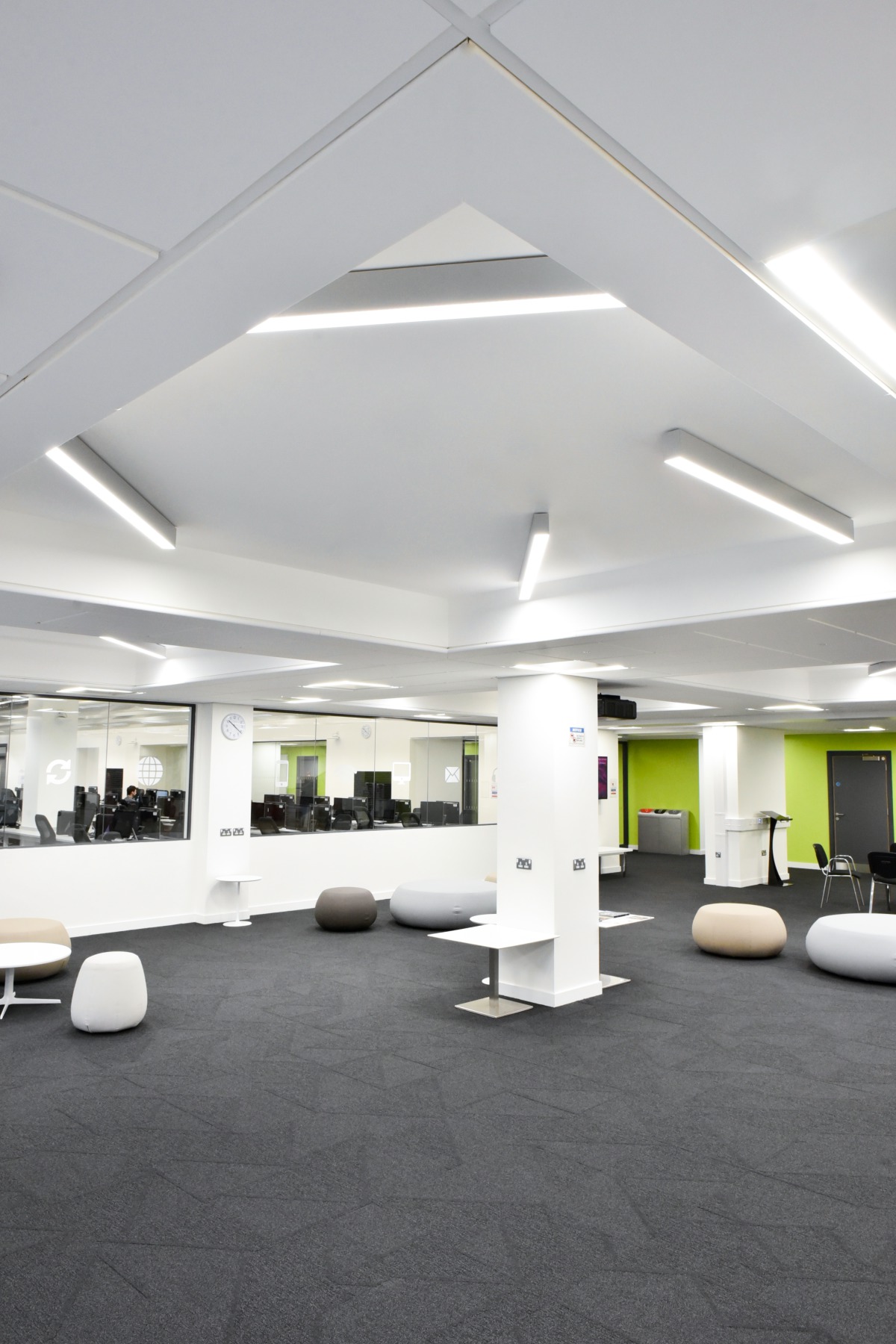 Also known as the Bernard Crossland Building, Saint-Gobain Ecophon provided a complete ceiling solution that offers the perfect balance between aesthetics and practicality. The expansion and refurbishment have doubled the size of the original building, with an increased number of computing resources, considerably more project space and additional seating and social areas for students.