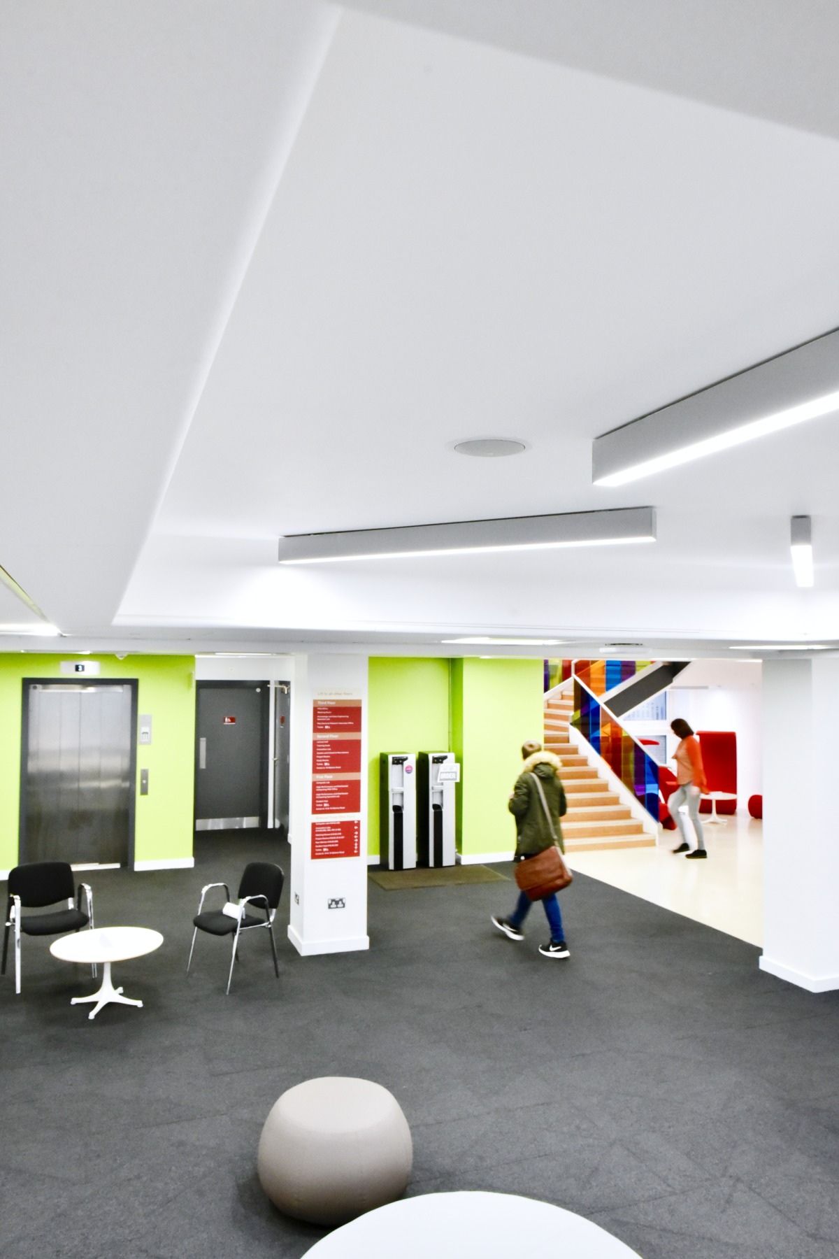Saint-Gobain Ecophon provided solutions to meet the individual requirements of each of these areas, including the impressive raft ceiling in the reception area. “We have completed a wide range of projects over the years for Queen’s University, so we were delighted to be involved in another of their ambitious projects,” explained Andrew Acheson, Area Manager for Northern Ireland.