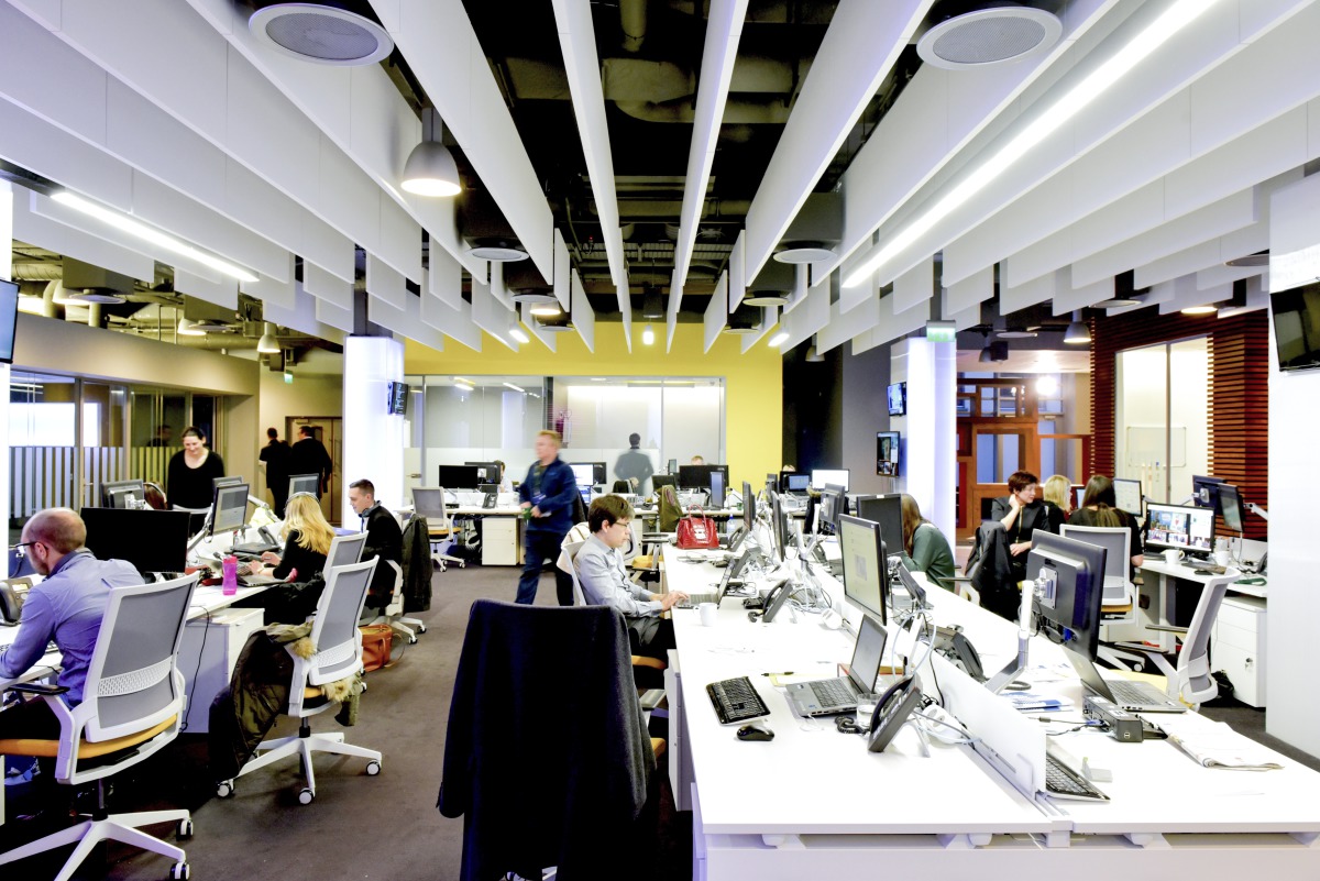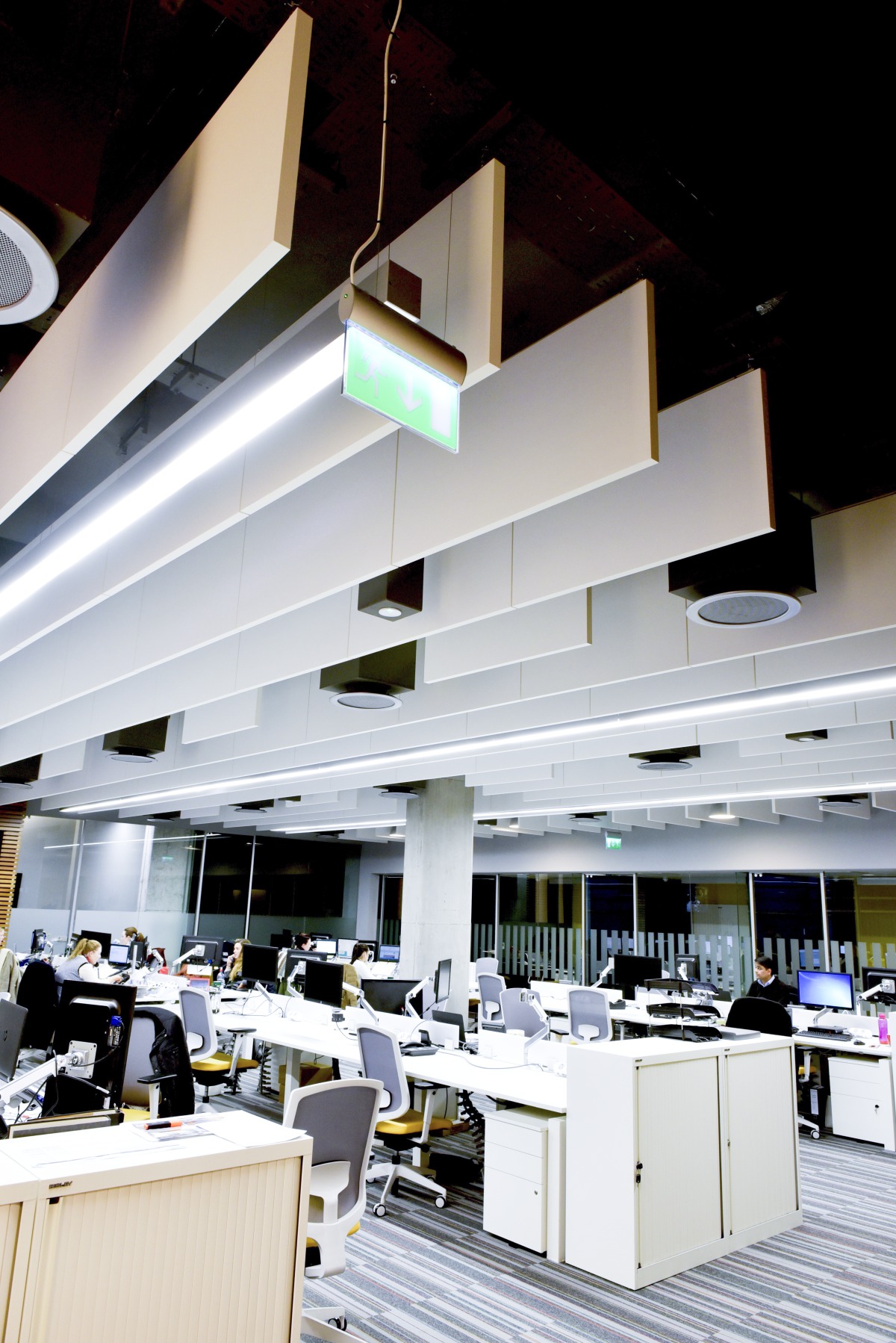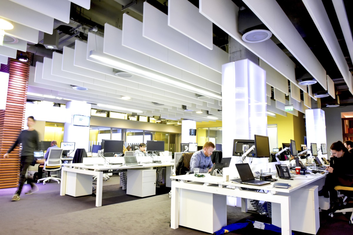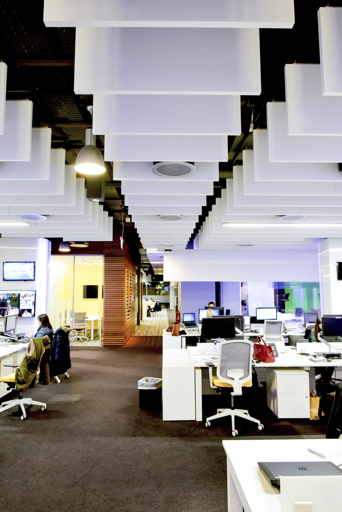 ’Acoustically the treatment clearly works. We have an open plan office, the news room is loud, there are people editing on open plan desks. Visually it was critical that when people walk into the building they get a sense of the modern look – that we’re a new broadcaster – and that they’d get the wow factor. The acoustic baffles definitely give us that.’