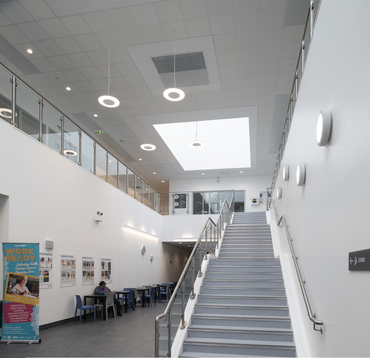 Placing a gym above a library required a collaborative effort and heavily relied on our specialist knowledge of Ecophon products to achieve the necessary acoustic separation.