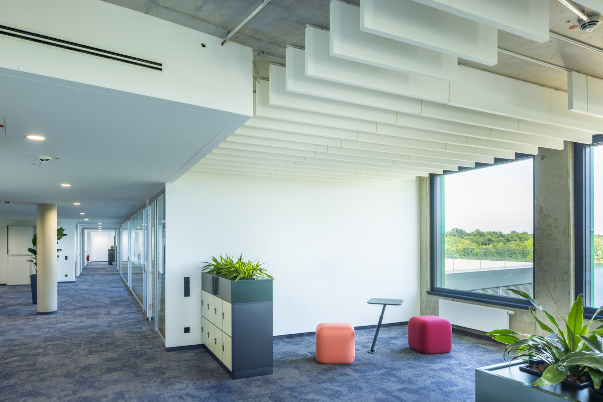 The new EUREF (European Energy Forum) Campus Düsseldorf is designed as a hub for innovation, bringing together business, science and research in a sustainable, future-oriented environment. For Schneider Electric Operations Consulting GmbH, which established offices on the campus, the goal was to create an open-plan workplace that encourages collaboration while also supporting concentration and wellbeing. Achieving the right acoustic balance in this setting was a key challenge.