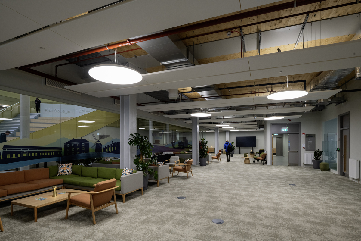 This landmark project marks the first significant adoption of the Scottish Government’s ‘Net Zero Public Sector Buildings Standard.’ Upon completion, the campus will be ‘net zero ready,’ reflecting Fife College’s commitment to sustainability and future-proofing educational infrastructure. Inside, the campus features industry-standard workshops for engineering and construction, and a dedicated university hub.