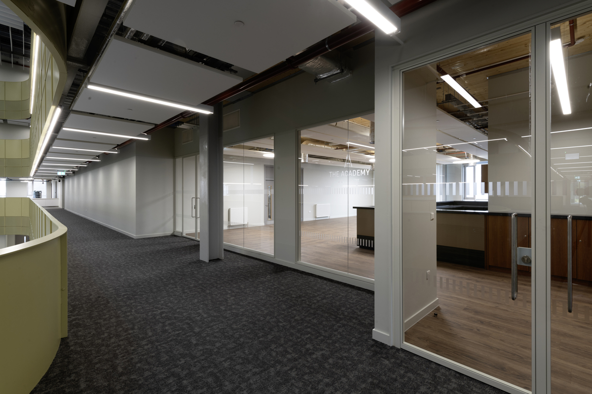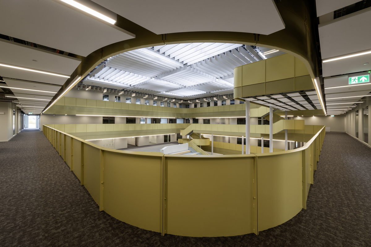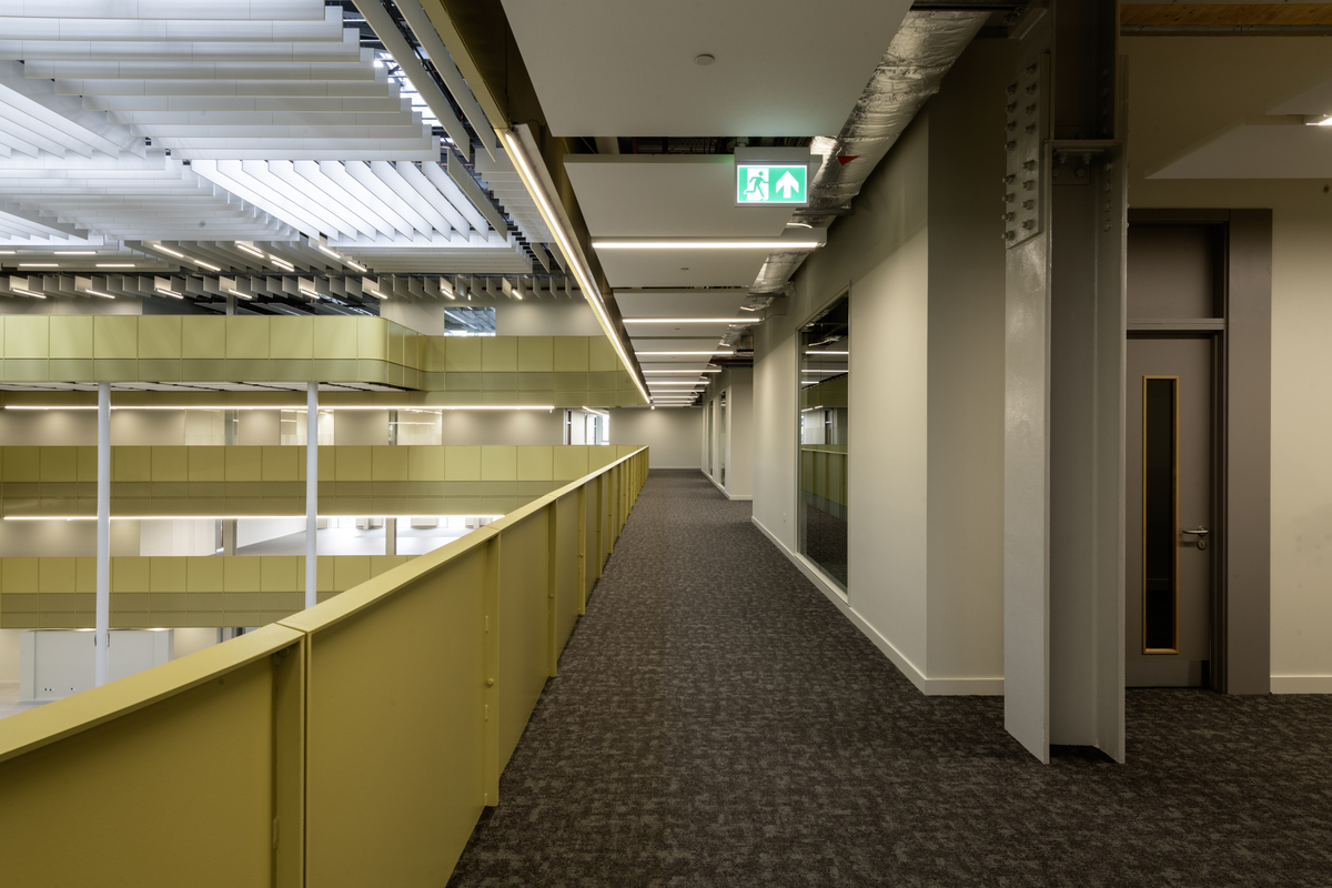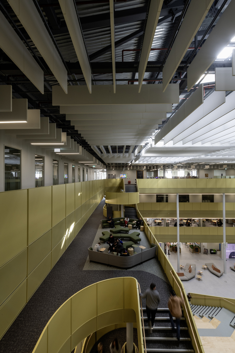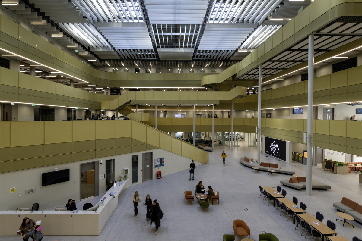 Finally, Reiach & Hall’s creative use of Ecophon Solo™ Baffle units in the atrium produced a dramatic interplay of light and shadow, further elevating the building’s visual impact.