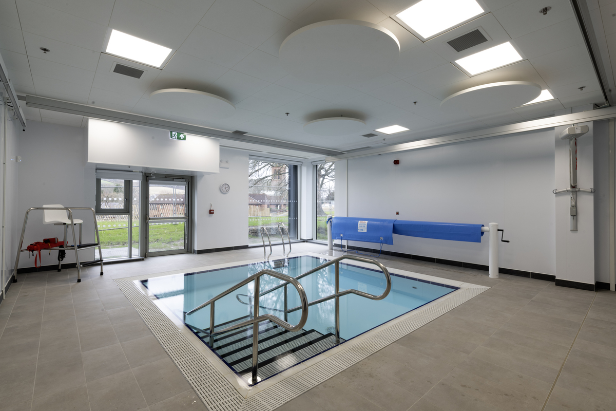 In the hydrotherapy pool, Ecophon Solo™ Circle acoustic rafts with Akutex HS surface were also installed to deliver the same high standards of durability and acoustic performance. These solutions supported the unique requirements of the hydrotherapy space, ensuring a comfortable and functional environment for users.