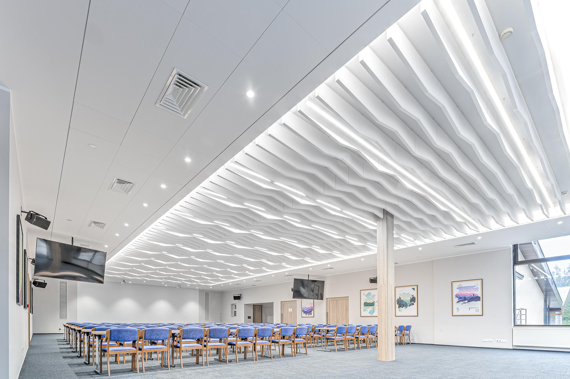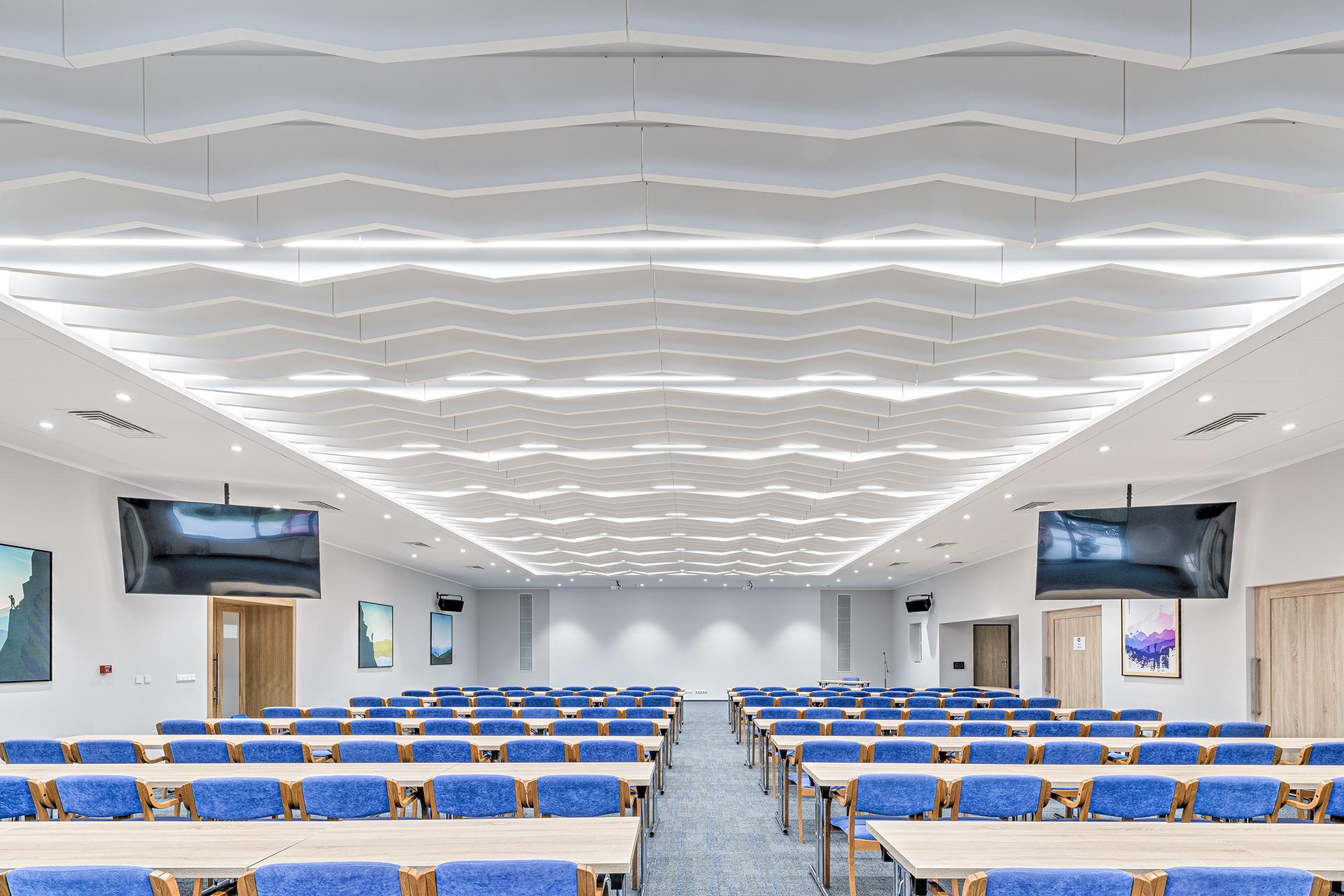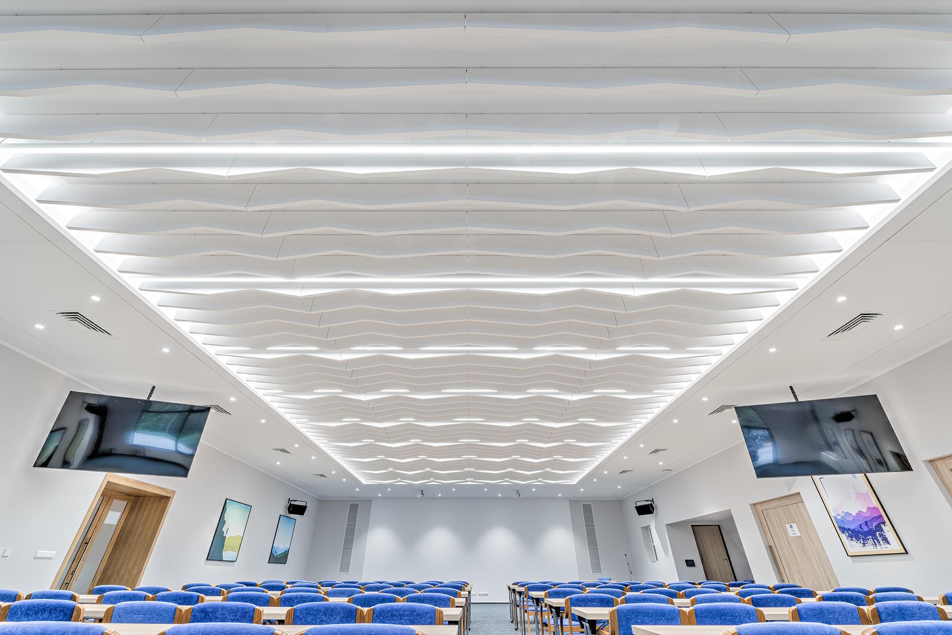 The panels not only gave the space a unique design, but also significantly shortened the reverberation time and improved speech intelligibility. This is crucial during conferences and trainings and can influence the overall satisfaction of the participants with the event.