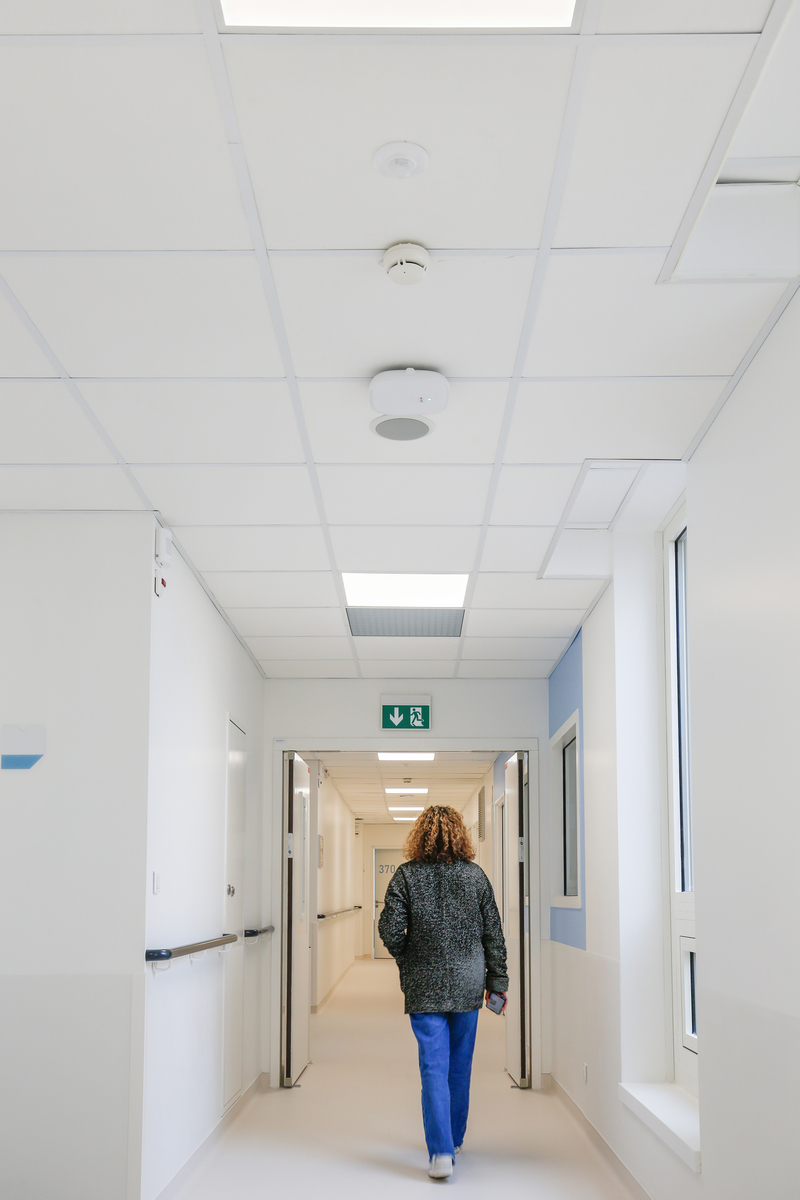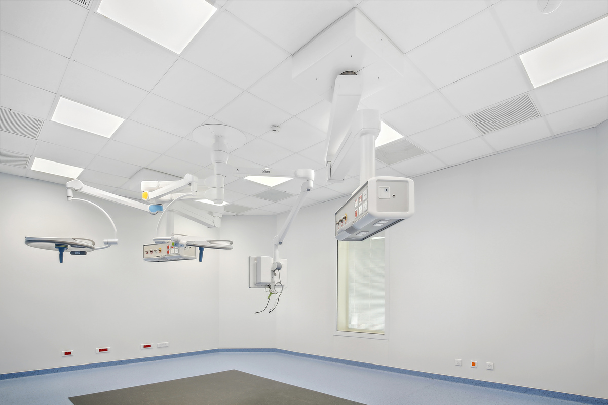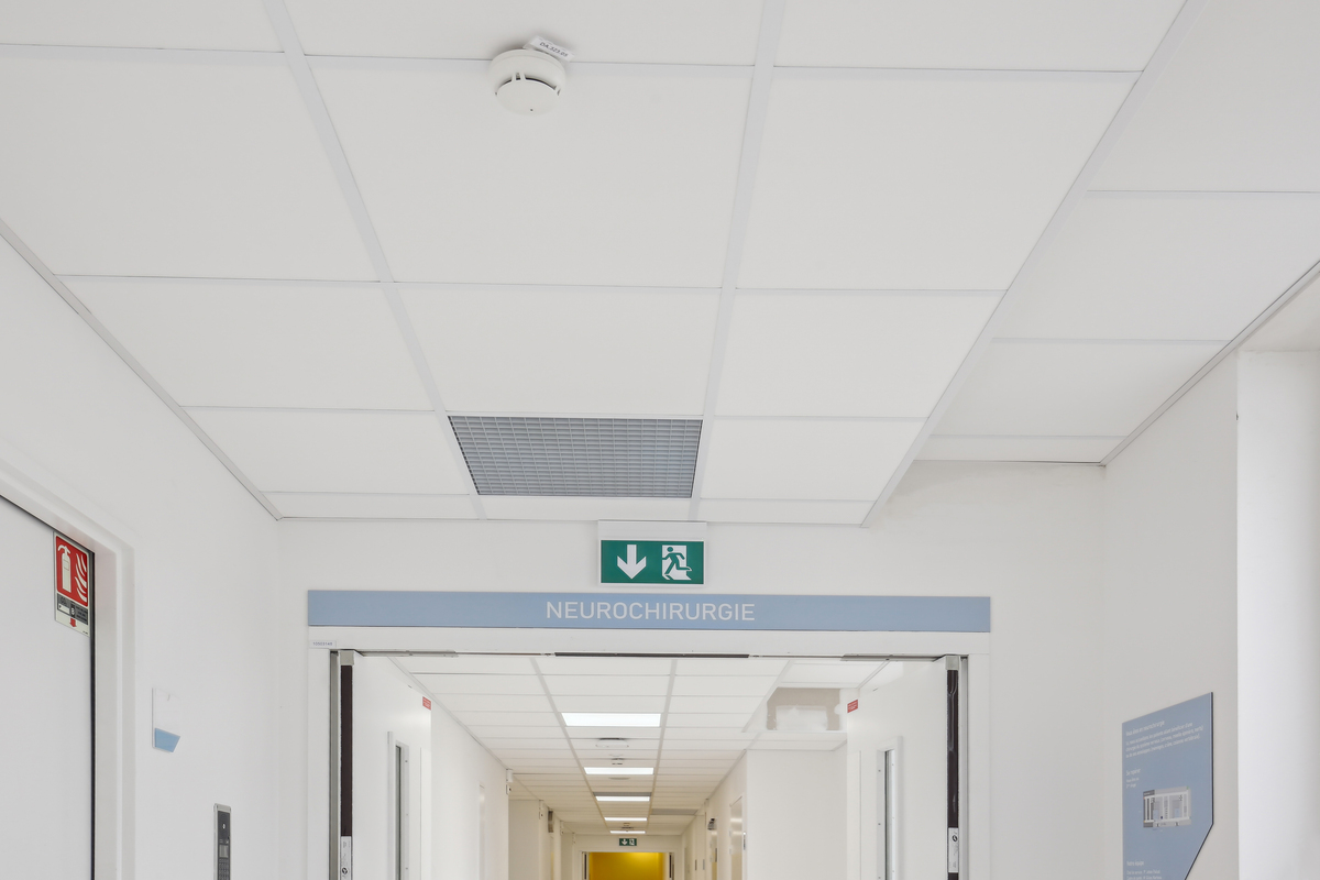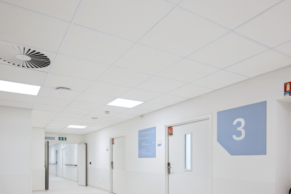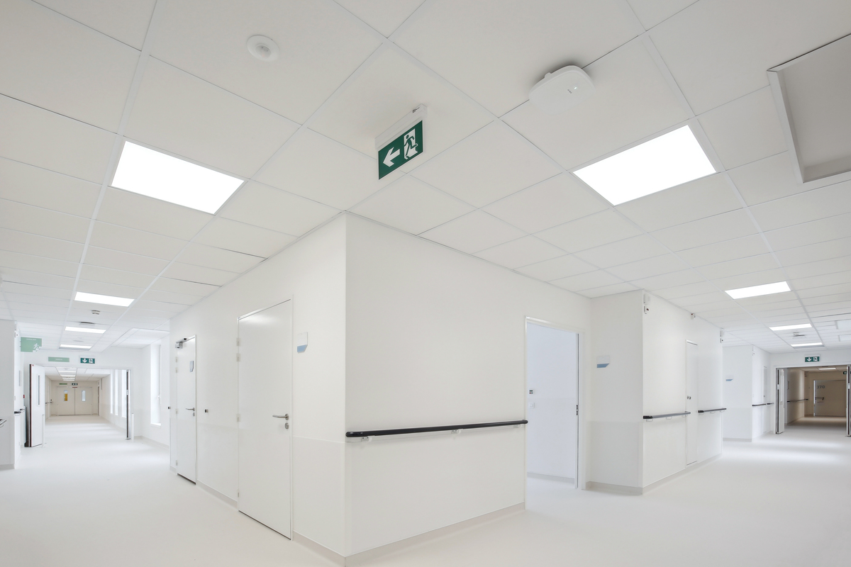 To mitigate noise in the busy corridors, Ecophon Advantage™ A tiles were installed. In the circulation areas of the operating rooms, standard rooms, and offices, Ecophon Hygiene Clinic™ tiles were installed, ensuring high indoor air quality and preventing the distribution of bacteria. The operating rooms, recovery rooms, highly medicalised rooms, and nursing stations benefited from Ecophon Hygiene Protec™ Air tiles. This system, meeting the strictest standards, is particularly suitable for environments where hygiene is paramount.
