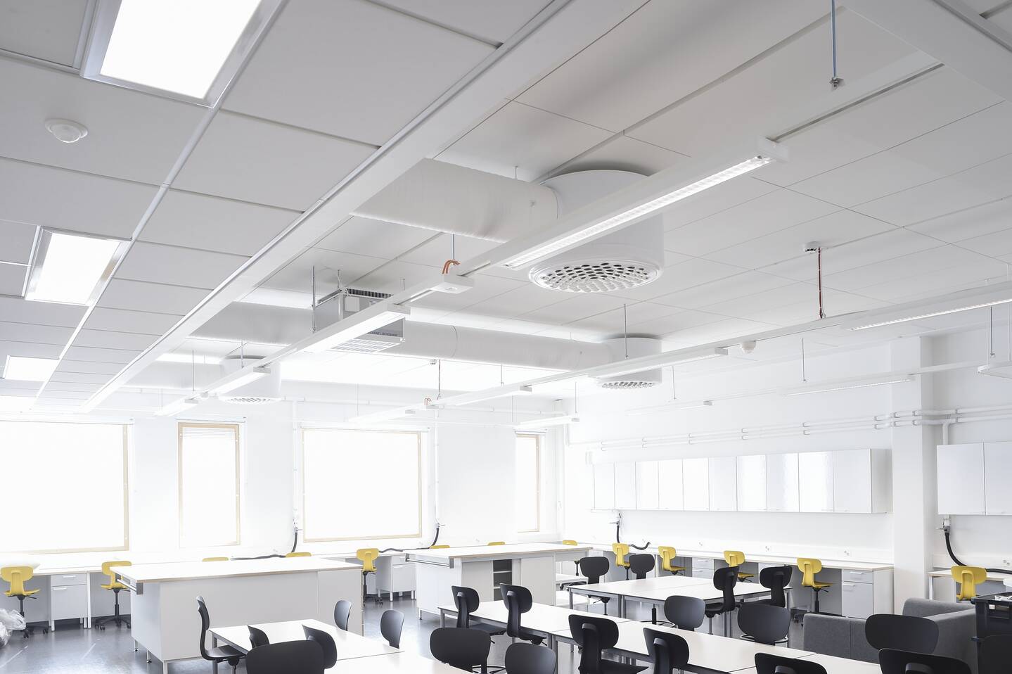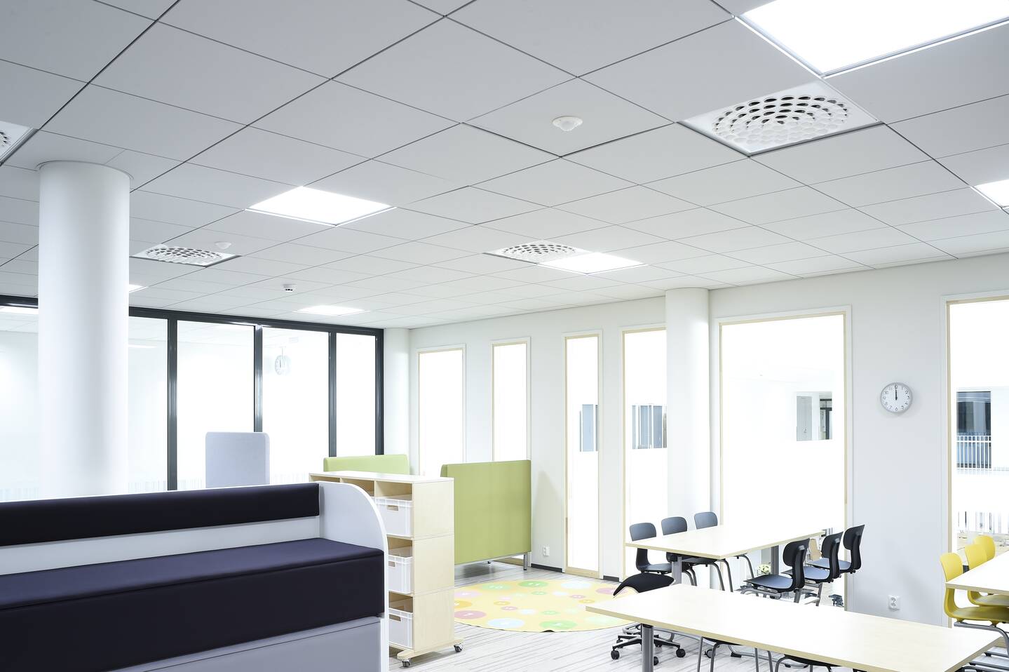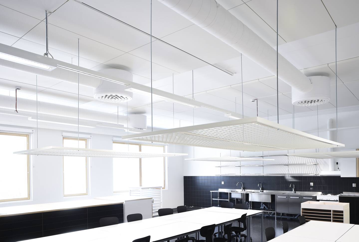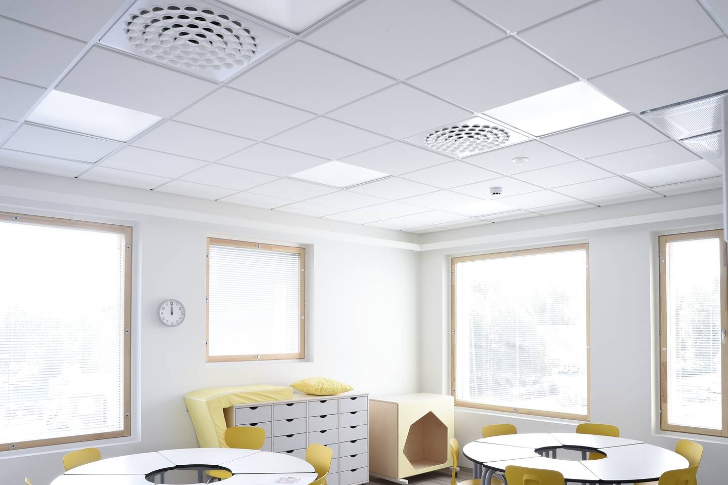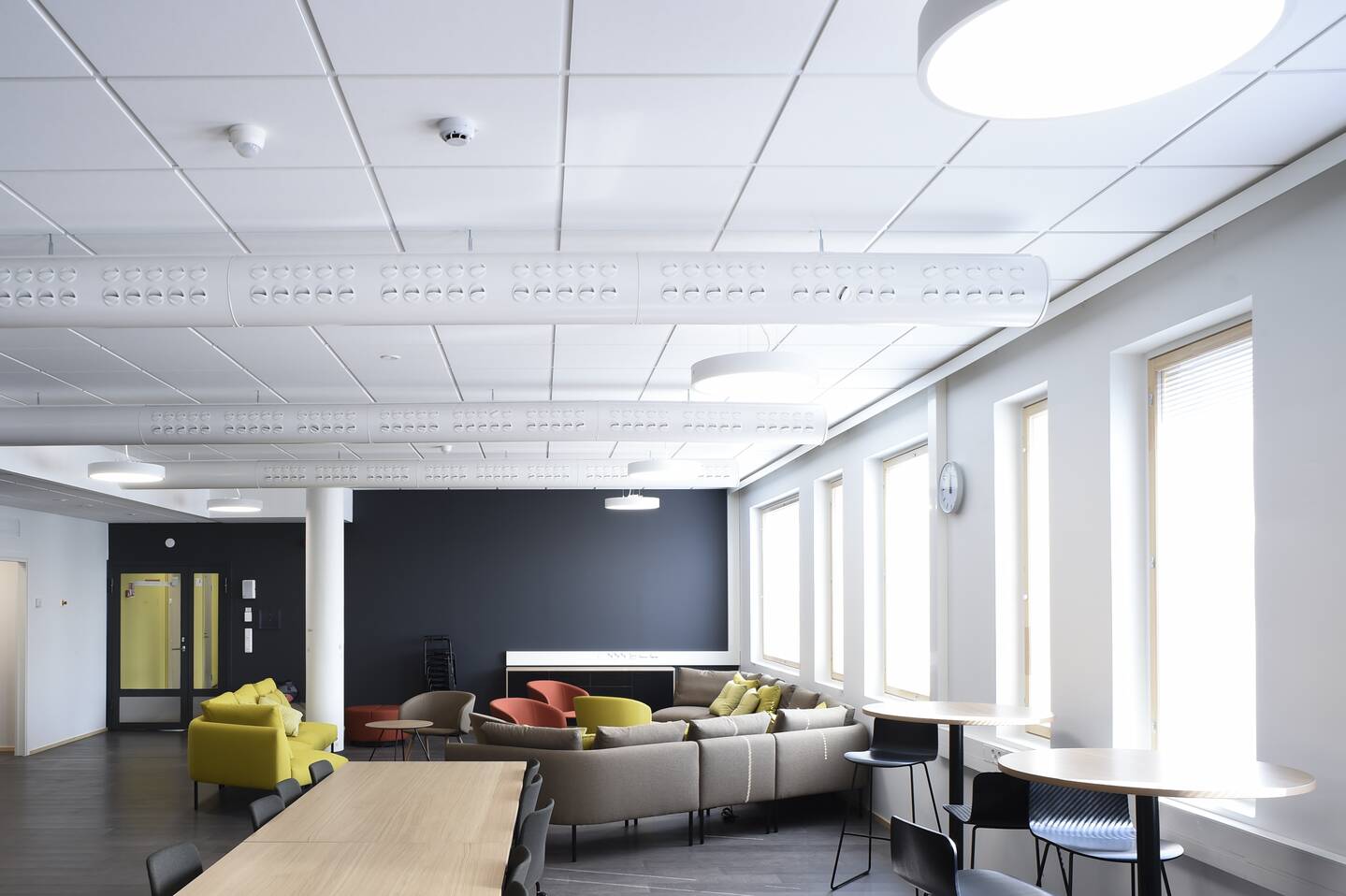 The Ylikylä school and community centre in Rovaniemi has a daycare centre, a comprehensive school, an after-school club and youth services. The building has more than a thousand daily users, from toddlers to teens. In the renovation of the old school building and the construction of the extension, special attention was paid to indoor air quality and good acoustics.