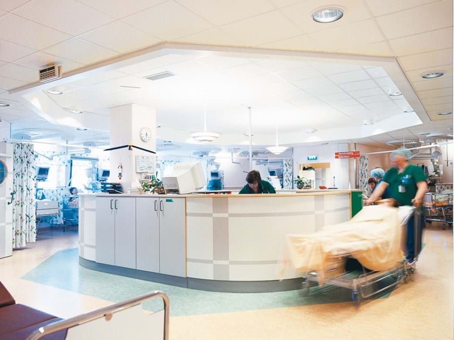 Members of staff devote about 40 per cent of their work time to various forms of communication. In order to make them more accessible, give them a better overview and bring them closer to the patients, many hospital employees work in open-plan environments. This might be in emergency or intensive care departments or nurses’ stations located in or at the intersection of corridors.